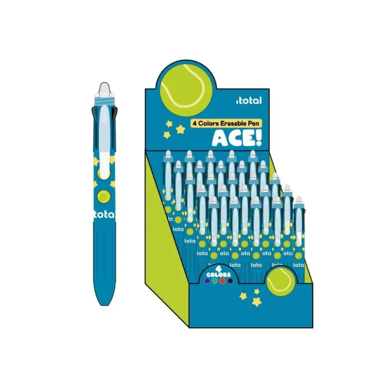 Bolígrafo Borrable 4 en 1 TENNIS - expositor 25 uds