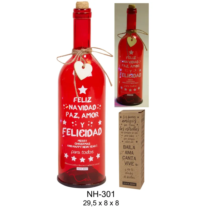 BOTELLA C/6 COLORES LED,FELIZ NAVIDAD...