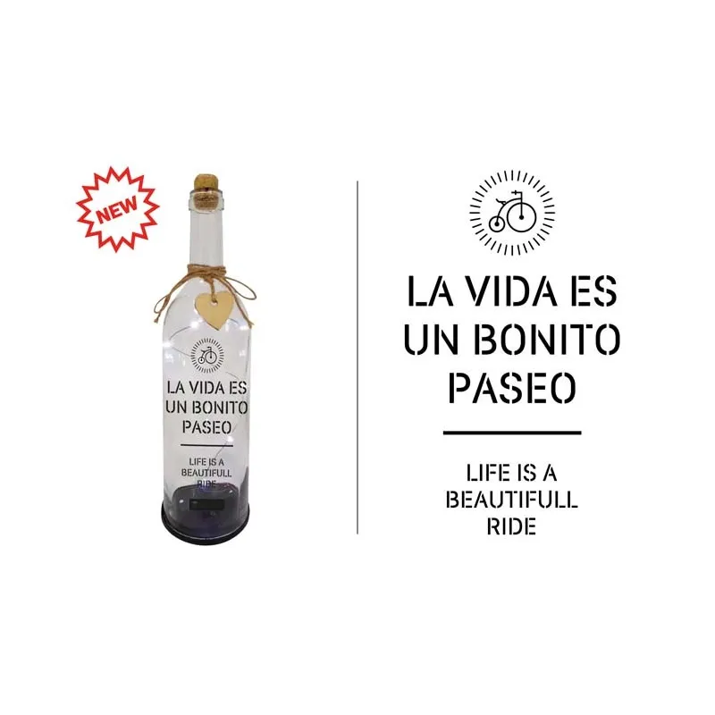 BOTELLA C/LUCES LED Y MENSAJE, LA VIDA ES UN ....