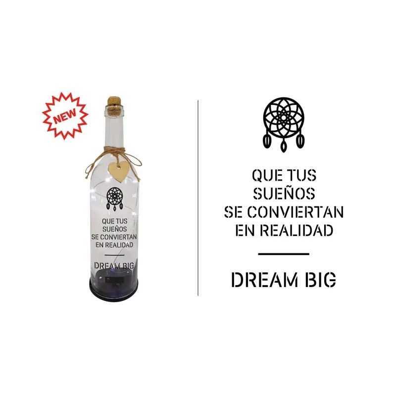 BOTELLA C/LUCES LED Y MENSAJE, QUE TUS SUEÑOS...