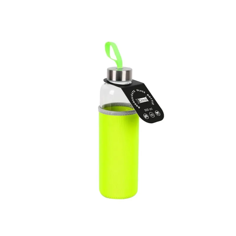 Botella de borosilicato 500 ml con funda amarilla en neopreno