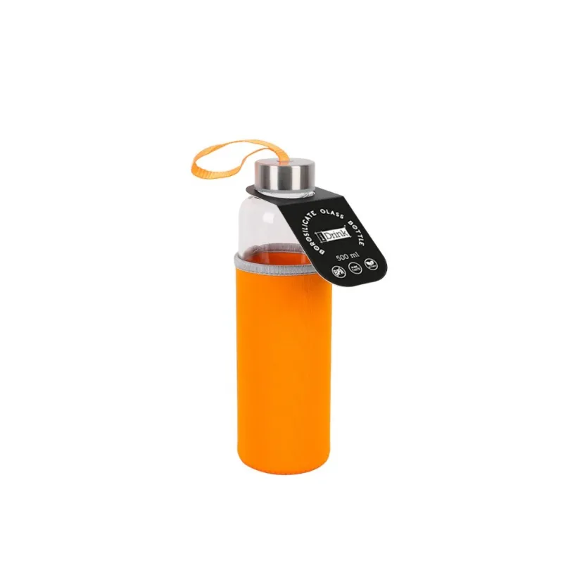 Botella de borosilicato 500 ml con funda naranja en neopreno