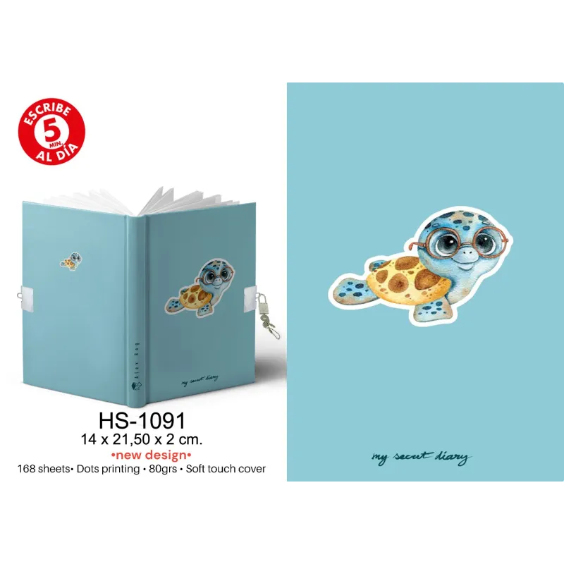 DIARIO A5 168H.C/CANDADO LITTLE TURTLE