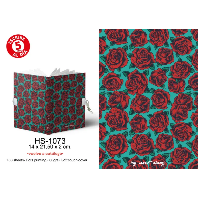 DIARIO A5 168H.C/CANDADO RED ROSES