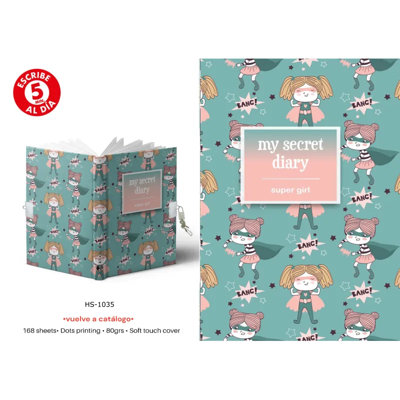 DIARIO TAMAÑO A5 CON CANDADO SUPER GIRL
