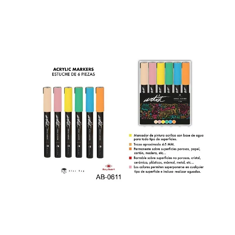 ESTUCHE ACRILICOS GAMA ARTIST,6 COLORES PASTEL