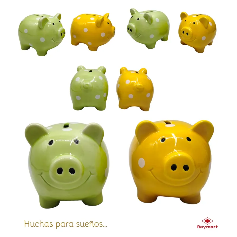 HUCHA CERDITO PEQUEÑA VERDE Y AMARILLO
