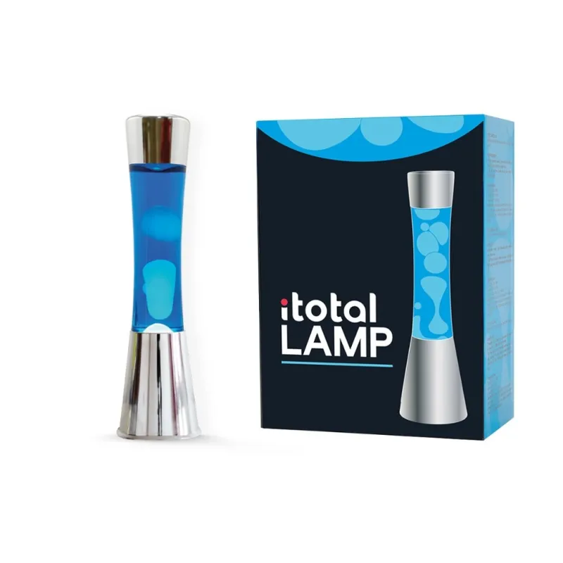 Lámpara de Lava Gravity con Base Plateada, Líquido Azul y Cera Blanca