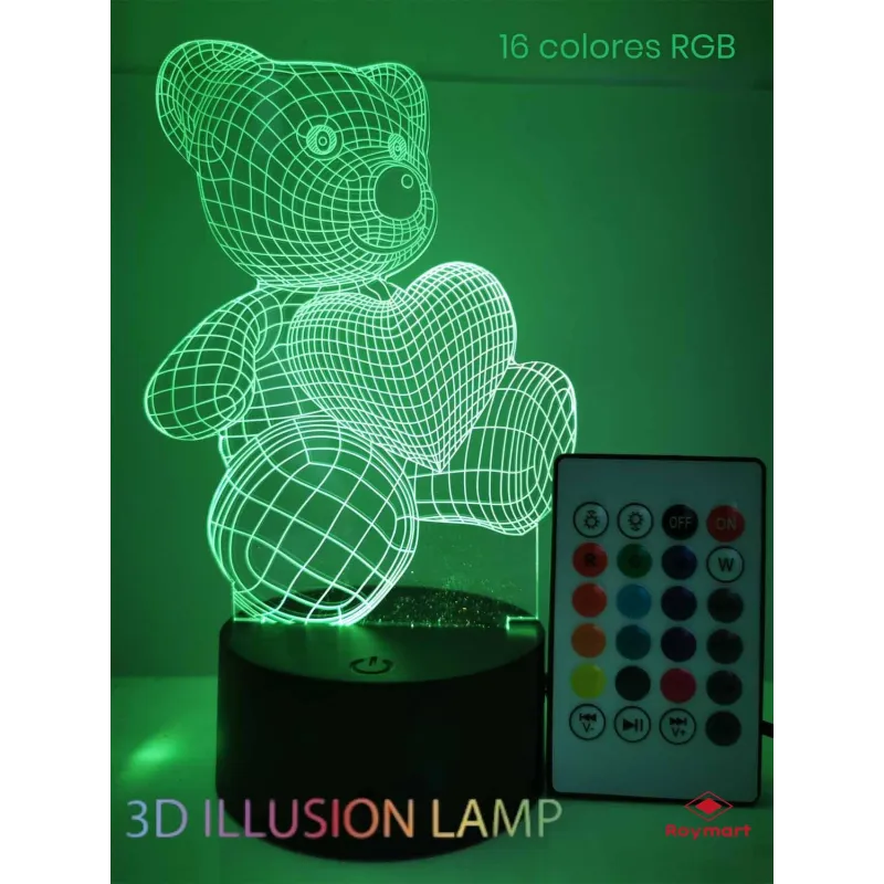 LAMPARA LED 3D NIGHT LIGHT BEAR CONTROL REMOTO