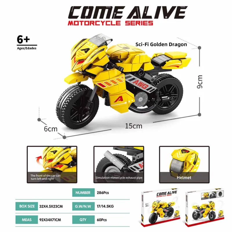 MAQUETA 286 PZAS CONST MOTO GOLDEN DRAGON AMARILLA