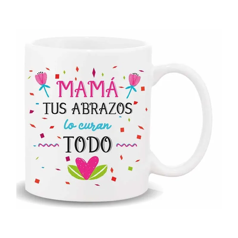 MUG CON MENSAJE , MAMA TUS ABRAZOS....