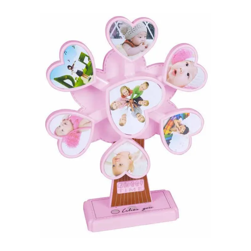 PORTAFOTOS MULTIPLE GIRO CORAZON ROSA