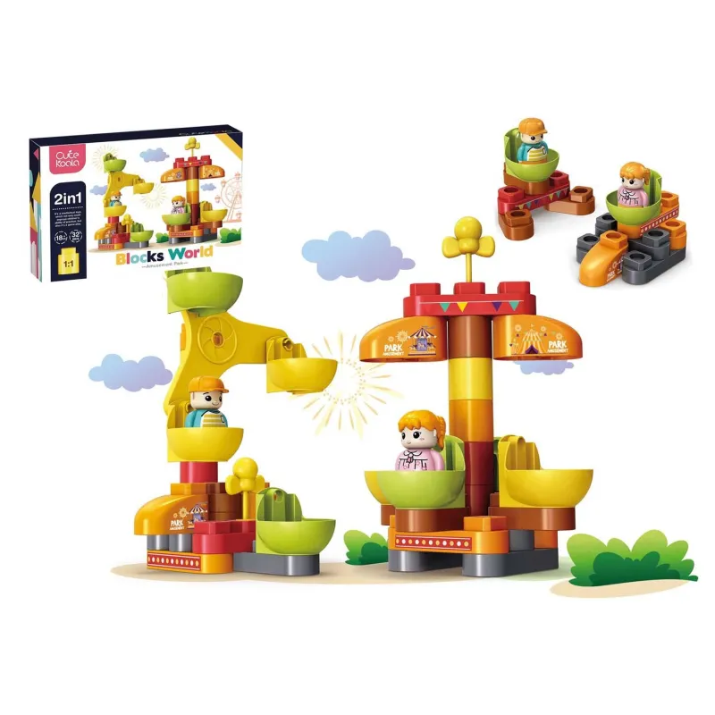 SET MONTAJE BLOQUES PARQUE 32 PIEZAS 2 EN 1